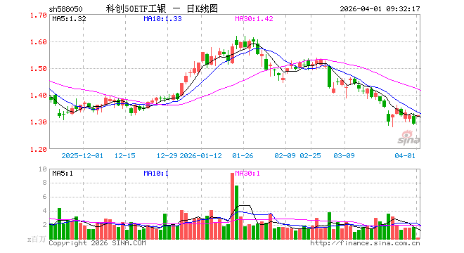 4月1日,科创50ETF工银(588050)开盘涨2.09%,报1.319元。科创50ETF工银(588050)重仓股方面,中芯国际开盘涨2.50%,寒武纪涨2.54%,海光信息涨3.25%,澜起科技涨3.77%,中微公司涨2.59%,金山办公涨1.90%,联影医疗涨1.16%,拓荆科技涨2.16%,芯原股份涨5.29%,沪硅产业涨2.01%。